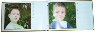 Περιλαμβάνει 16 σελίδες για φωτογραφίες του μαθητή, της τάξης, του σχολείου, του δασκάλου και των συμμαθητών του, 8 σελίδες για φωτογραφίες από την σχολική ζωή και σχολικό ημερολόγιο 12 σελίδων. Διαστάσεις: 23x24εκ. κλειστό, 23x48εκ. ανοιχτό.