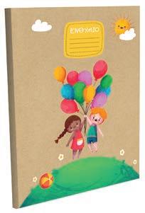 χαρτί γραφής 70γρ., ριγέ. Οπισθόφυλλο χοντρό καφέ χαρτόνι 800γρ.