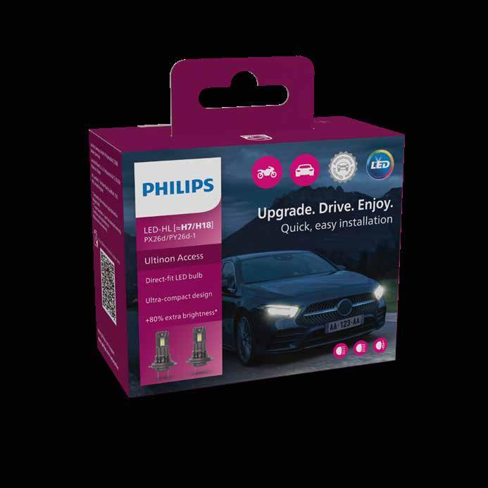 There’s no need for compatibility checks or adapter rings: Philips Ultinon Access LED bulbs have an ultra-compact body and an integrated IEC 60061 compatible base. Their direct-�t design features the same footprint as halogen bulbs, enabling straightforward installation in tight spaces.