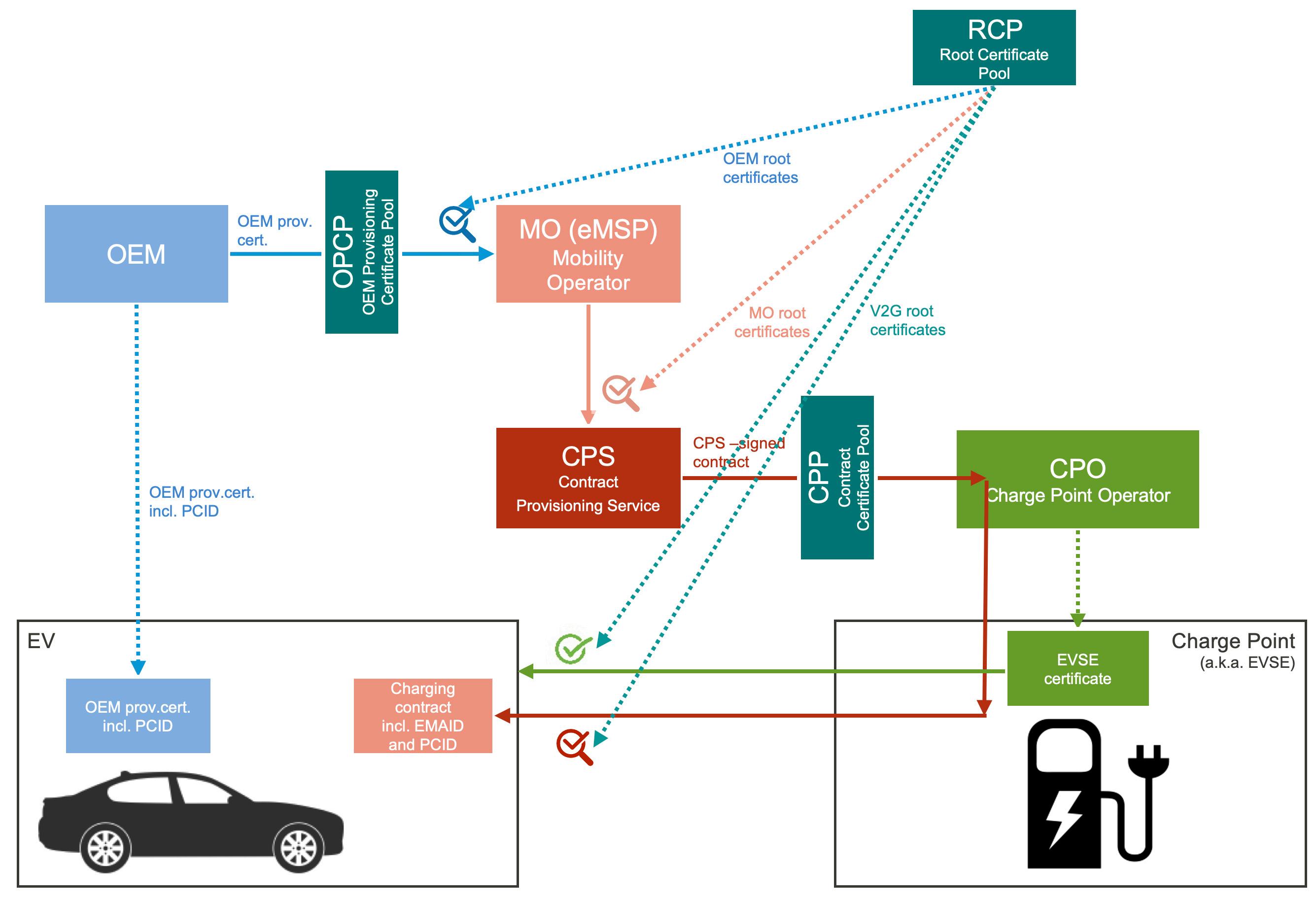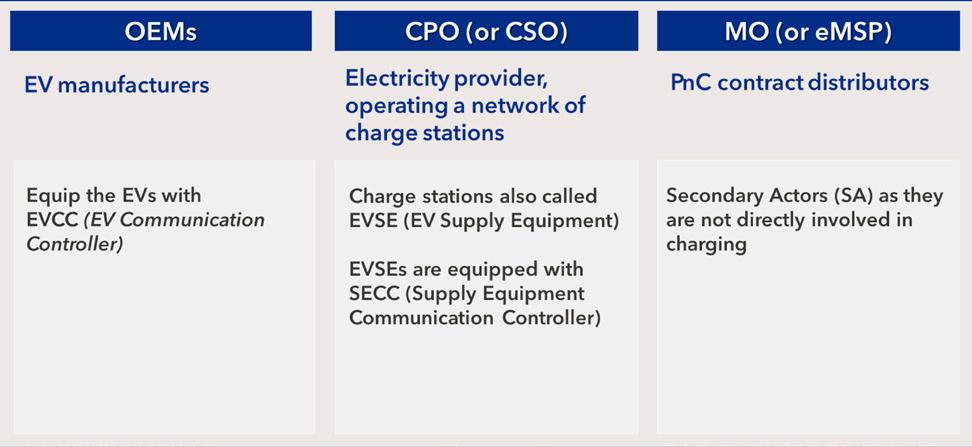 ISO 15118-2 defines the following main roles for the PnC ecosystem: