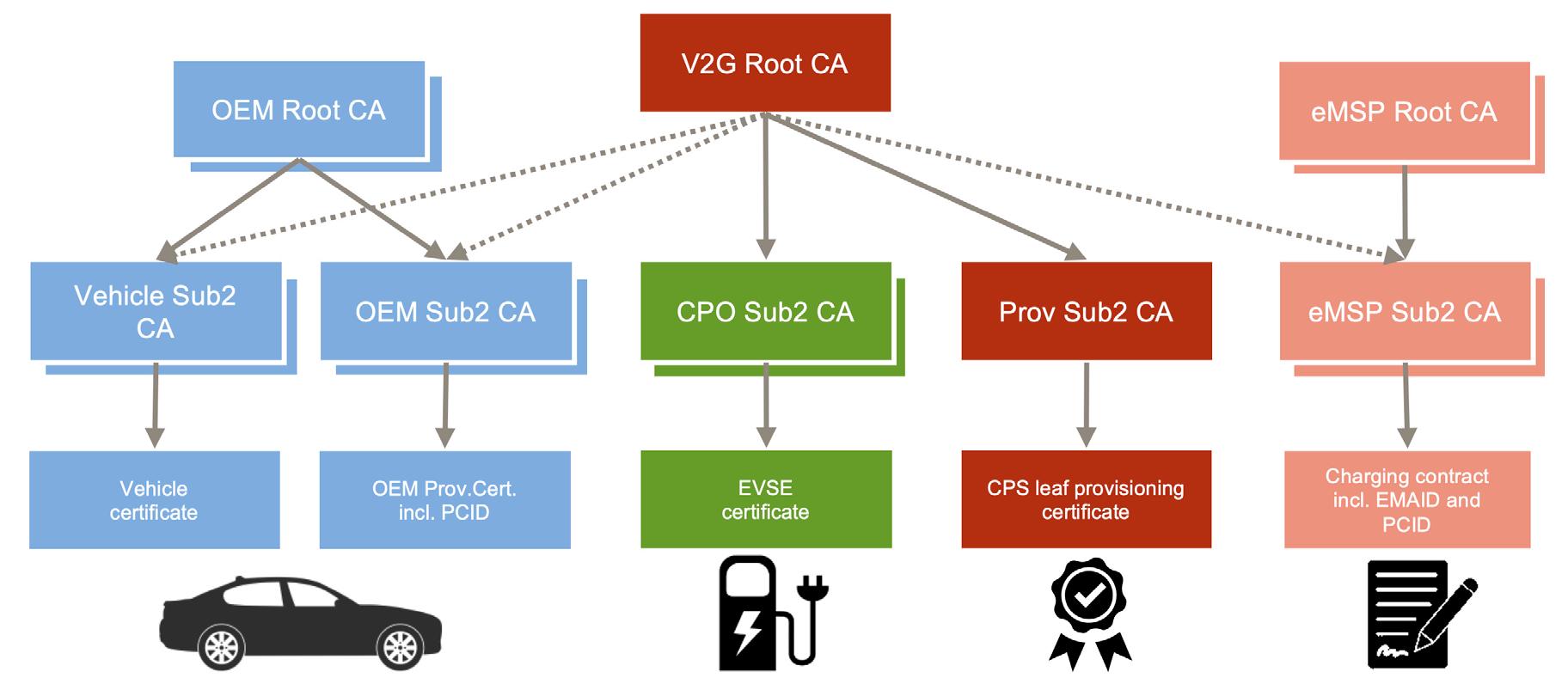 Figure 7. ISO15118-2 introduces vehicle certificates and makes Sub1 CAs optional