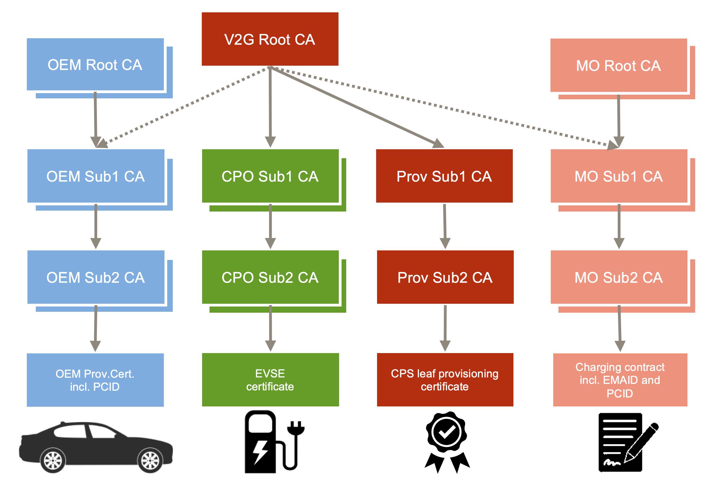 ISO 15118-2 was designed with the vision of having one V2G Root CA entity in a geographical region. While this leads to the least technical complexity, there are business and robustness arguments that demand multiple V2G Root CA entities.