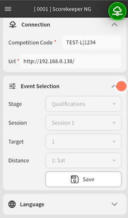 Open the Scorekeeper NG app; Tap “Setup app using a QR code”; Point your phone’s camera at the QR code on your scorecard; A grey screen will pull up. Please pay attention to the distance (Distance 1: Day/Round 1, Distance 2: Day/Round 2); Check that the information matches the scorecard and displays the correct day/round; Tap “Save”.