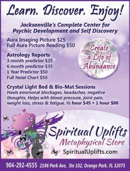 Professional energy work and myofascial release massage. Reiki, meditation, white light, mediumship, massage, meditation and Reiki classes. Continuing education for FL LMTs. See ad on page 19.