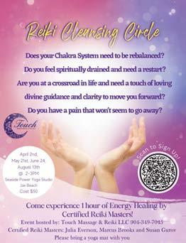 Sound Bath Healing – 10am. Move stressful, heavy and sluggish energy off our bodies with the use of vibrations and tones. $33 per session. Touch Massage & Reiki, 6000A Sawgrass Village Circle, Ponte Vedra Beach. 904-349-7045.