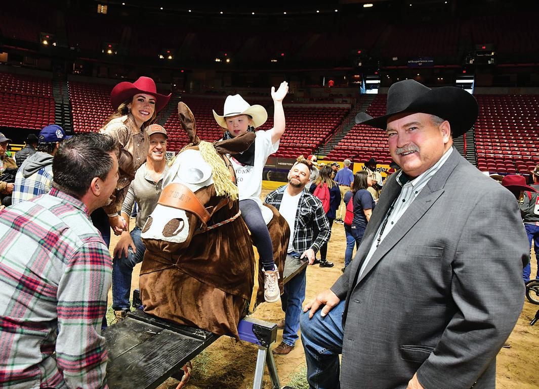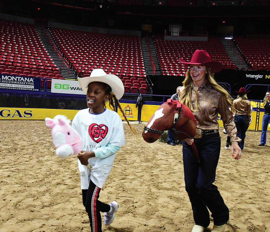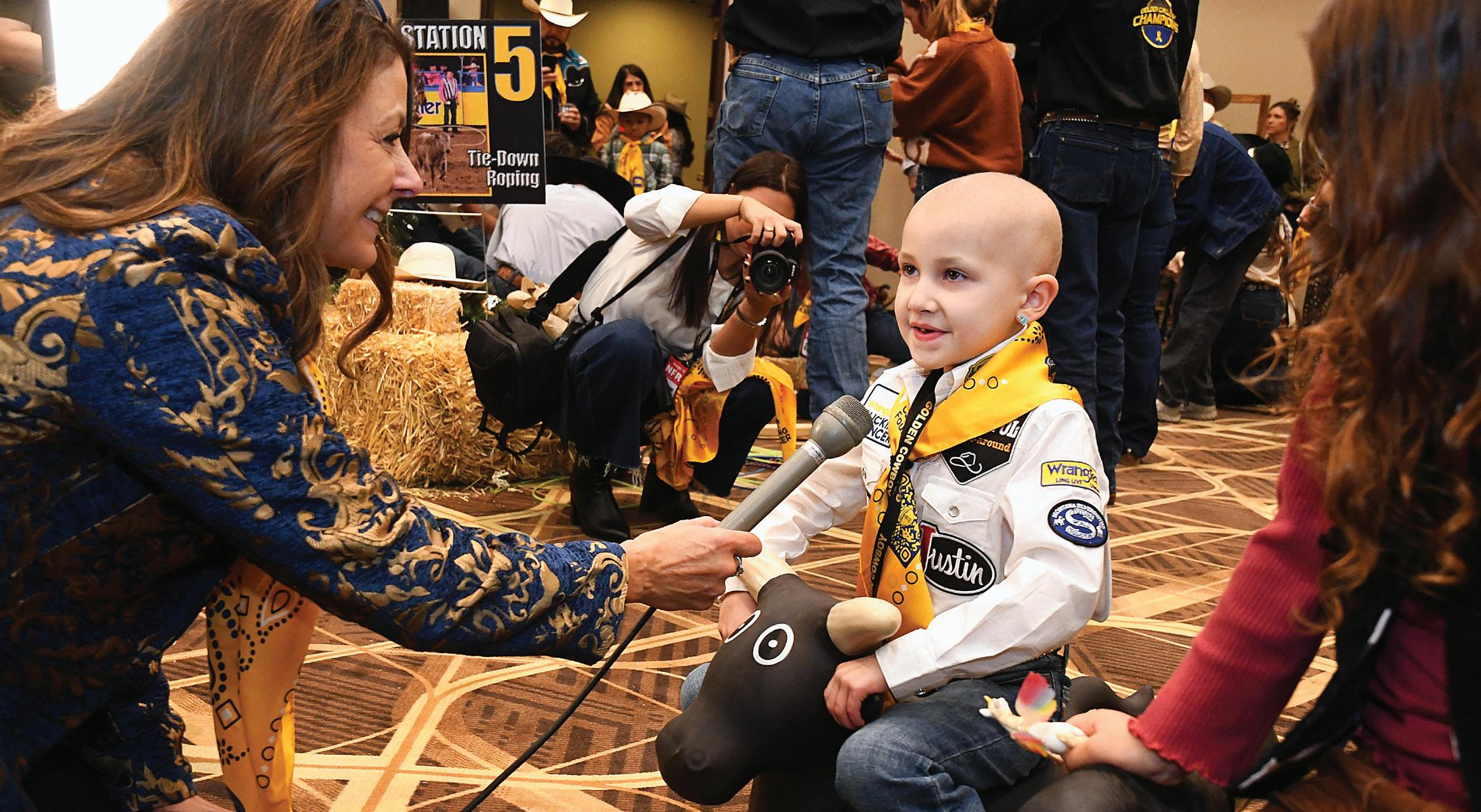 fortunate to have champion cowboys and cowgirls spend the day with some of our pediatric cancer patients. The kids are having the time of their lives—learning how to rope, learning how to ride bouncy ponies, and doing all kinds of fun, rodeo-related activities. And the best thing is that they then get to go and experience the National Finals Rodeo.