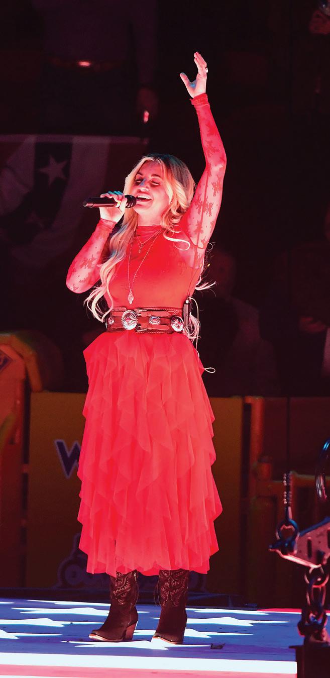 IT IS A TREAT TO WATCH ESTABLISHED STARS AND UP-AND-COMERS HONOR AMERICA BY SINGING THE STAR-SPANGLED BANNER PRIOR TO EACH WRANGLER NATIONAL FINALS RODEO PERFORMANCE.