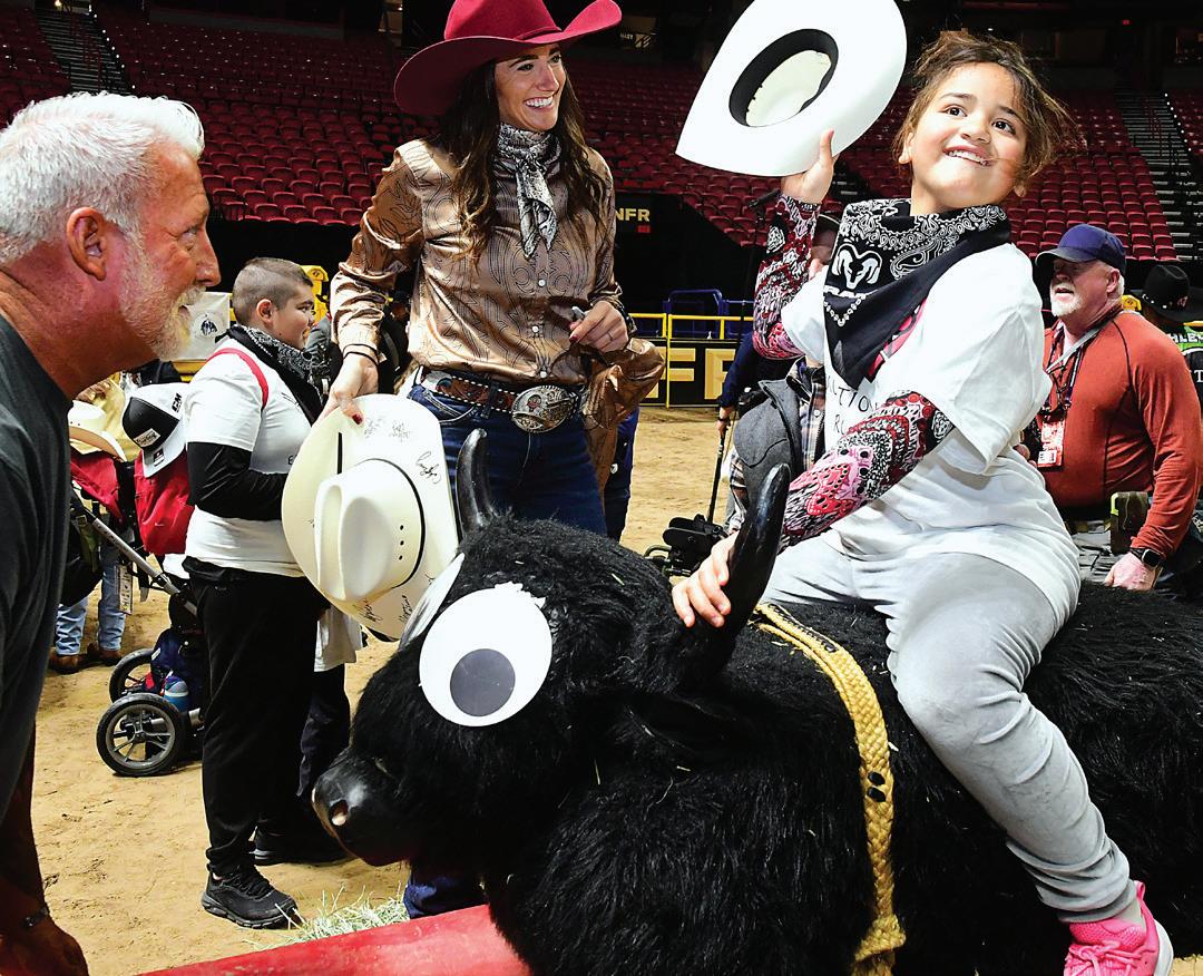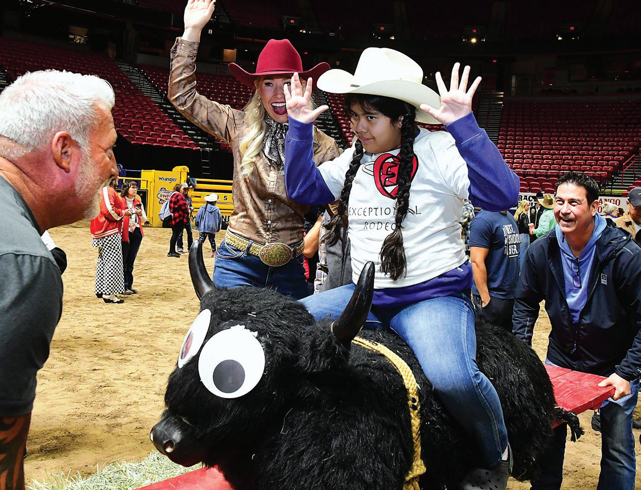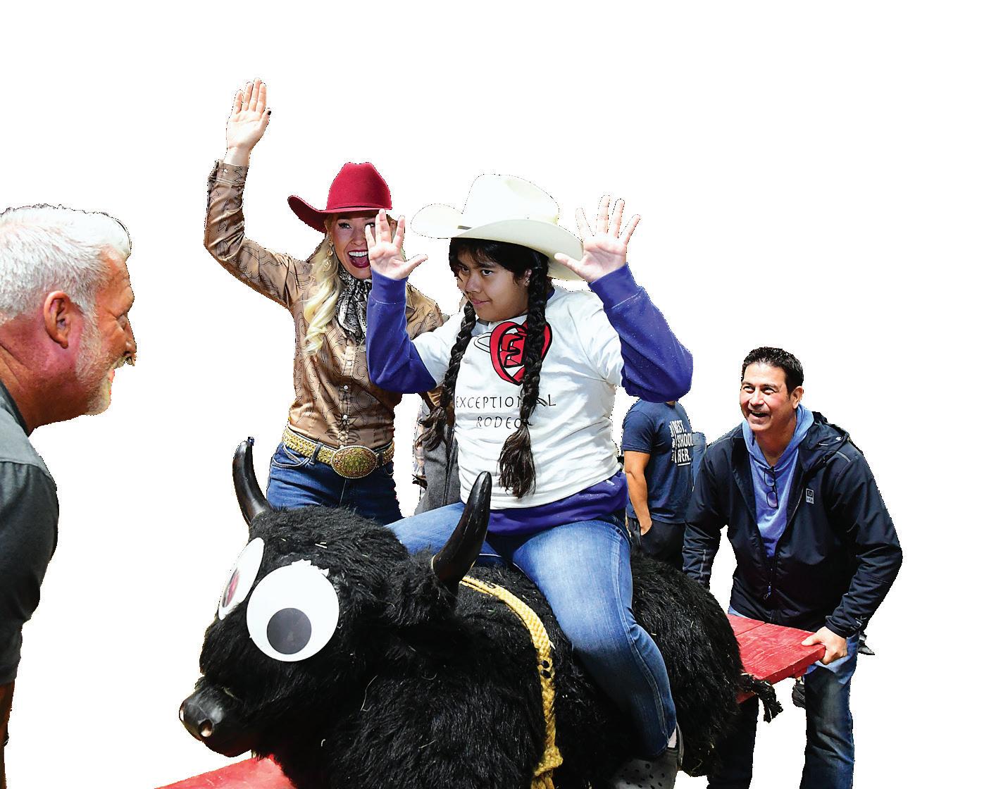 The adaptive rodeo events include stick-horse barrel racing, riding rocking bulls and broncs, and roping hay-stuffed practice steers. Each activity is customized to allow the kids to have fun and feel like a roughand-tumble cowboy or cowgirl for the day. Being part of the event builds bonds and raises self esteem for the kids.