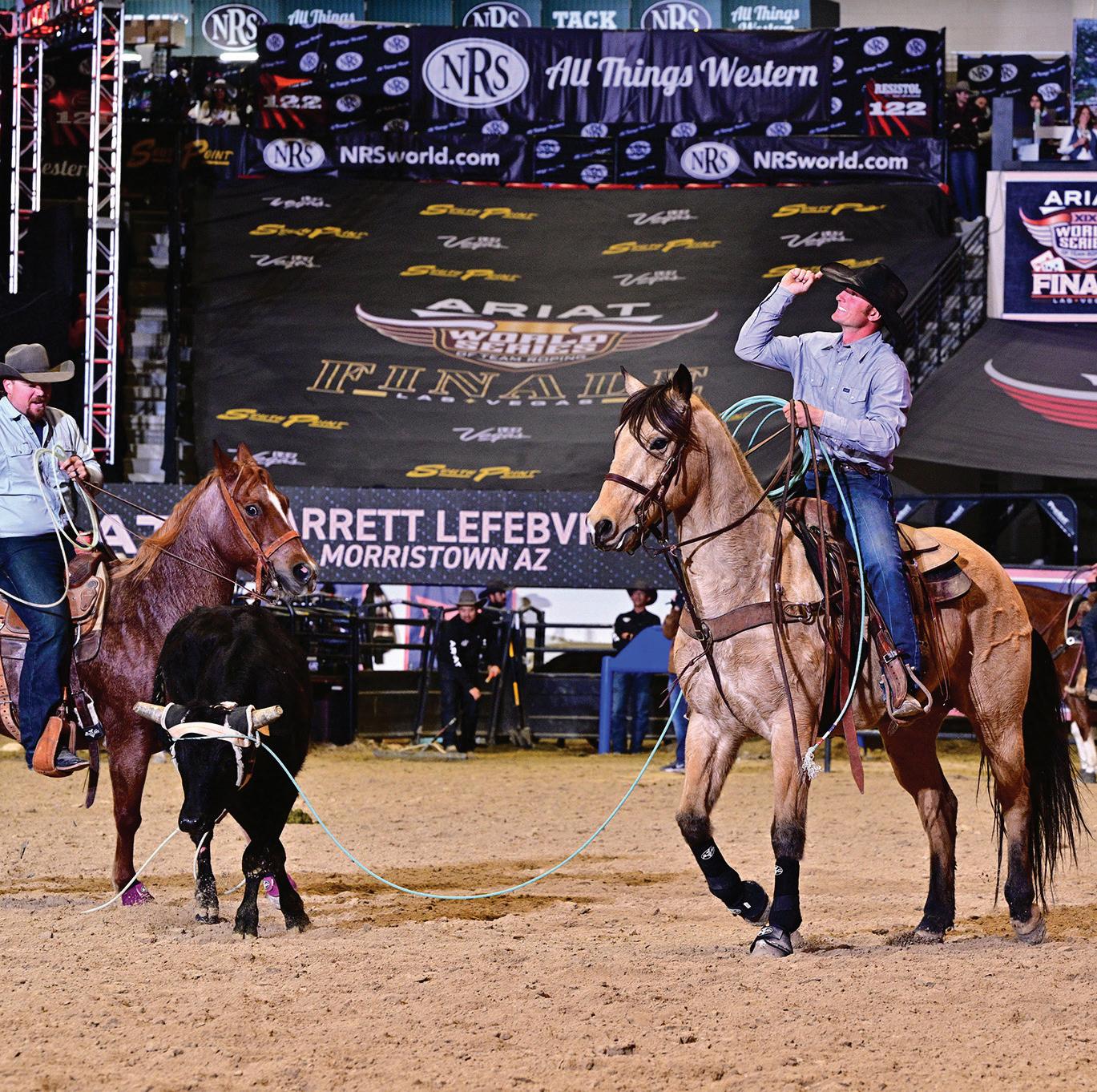 It was Arizona’s Garrett Lefebvre and Clancy Wilkerson who took home $407,000 for their win in the #9.5 Ariat Finale at the Ariat World Series of Team Roping after their