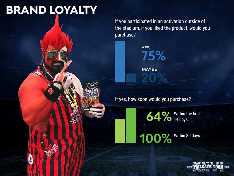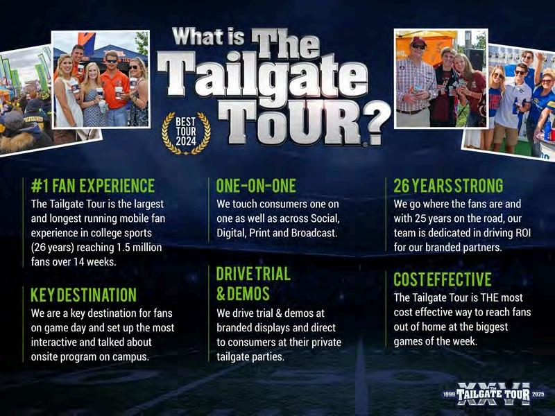 LongevitySpeaksVolumesTheTailgateTourhasbecometheLARGESTandLONGEST runningfanexperienceincollegesports!