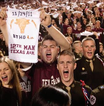 Back in 1922, an Aggie by the name of E. King Gill became the first 12th Man, after he remained standing and ready to play for the entirety of the game, one that the Aggies’ won 22-14 in a stunning upset. Today, the 12th Man honor belongs to the Aggies’ student section, 38,000 strong that stand throughout the game at Kyle Field. A&M has trademarked the name and their stadium is colloquially known as “The Home of the 12th Man.” As the school’s site describes: “The power of the 12th Man is echoed in the unity, the loyalty, and the willingness of Aggies to serve when called to do so.”