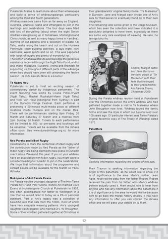 Mokopuna of Ani Parata Evans Ani Parata was the youngest daughter of The Hon Tame Parata MHR and Peti Hurene. Before Ani married Clive Evans at Huiterangiora Church at Puketeraki in 1905, she often accompanied her father to Wellington in a role that we would refer to today as a PA or personal assistant. Part of Ani’s legacy was a collection of beautiful kete that date from the 1890s, most of which have very exquisite weaving patterns. Ani’s youngest daughter was Margaret, who married Dr L.W. Broughton. Some of their children gathered together at Christmas in