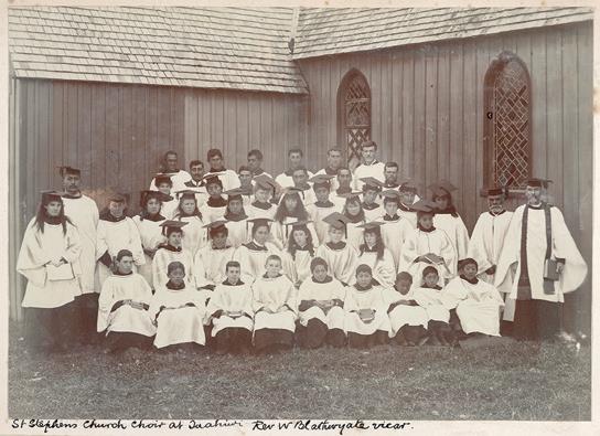 This image is from the Alexander Turnbull Library, Joseph Lowthian Wilson Collection, Ref: PA1-q1135-49-01. It was taken some time between 1898 and 1903 and shows St Stephen’s Church Choir at Tuahiwi.