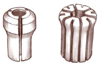 Generally, the more segments on a collet the better, because these make the collet more flexible so it can get a better grip on the bit shank, as you can see in the drawing at right. Routers with multiplesegment collets tend to be a bit more expensive, but the potential headaches they eliminate are well worth it.