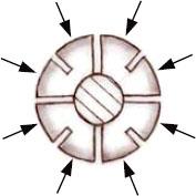 Collets with just 2-3 segments (left) don’t squeeze router bit shanks evenly. In fact, they make contact at just a few points. Collets with multiple segments (right) are more flexible and make contact all the way around the shank, which helps keep the bit from slipping.