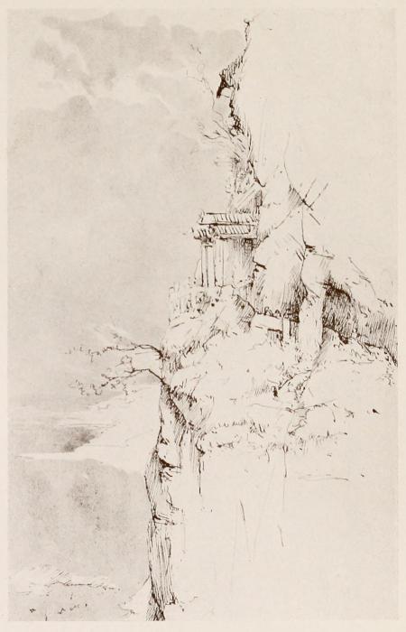 view across the shimmering lake. Sometimes we passed through fine carved gateways, and we found the thousand steps rather long and weary! At one shrine a young acolyte, suffering from hip disease, prepared tea for us, before we attacked the topmost stage of pilgrimage. This led by a passage cut in the face of the rock to a very lofty little shrine, where squirrels were sporting among the overhanging shrubs. We entered the dragon gate, over which was inscribed the legend “Blessing to all who come.”