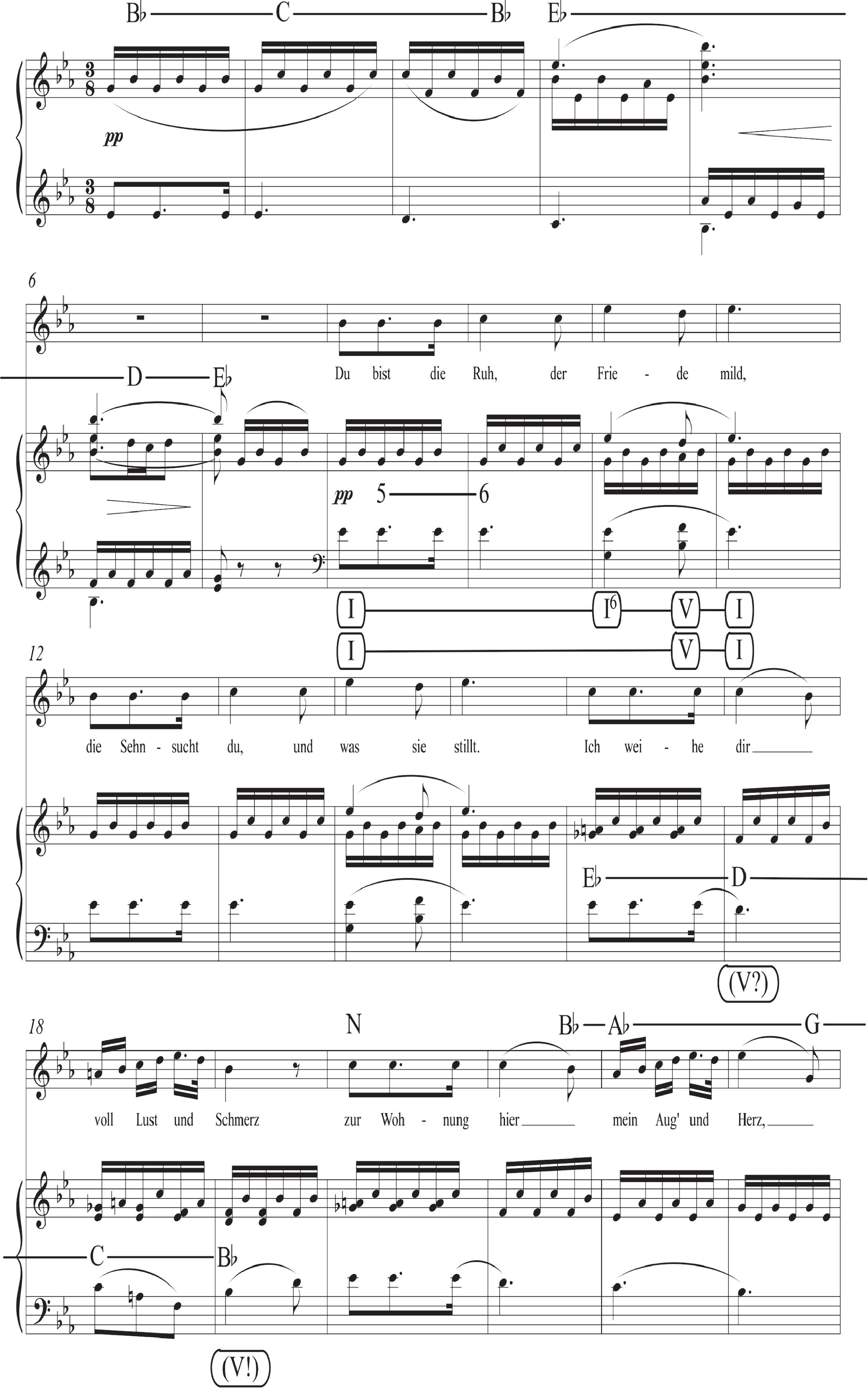 EXAMPLE 1.8 Schubert, “Du bist die Ruh,” annotated score.