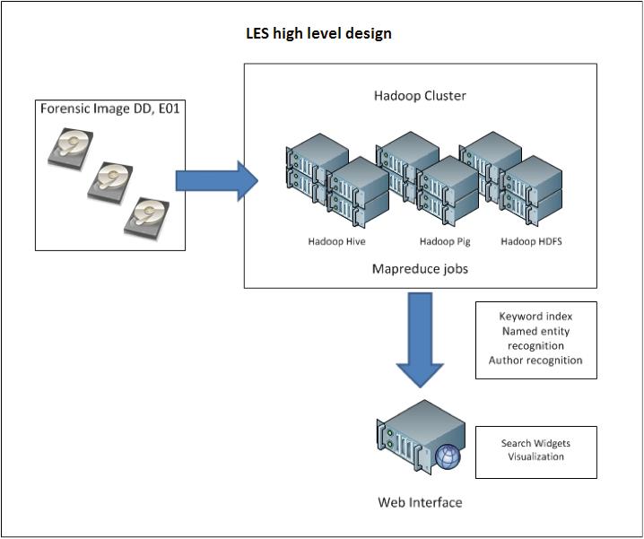 Inhousedevelopedsoftwarecomponentsallowinvestigatorstorapidlyaccess forensicdiskimagesorcopiedoutsingle files.MapReduce[16]jobsarethenexecuted overthedatatomakeparallelprocessingpossibleovermultipleservernodes.Other MapReducejobsarebuiltinLEStoolfortextextractionandtextindexing.Atthis momentthefollowingNLPtechniquesareimplementedinLES: