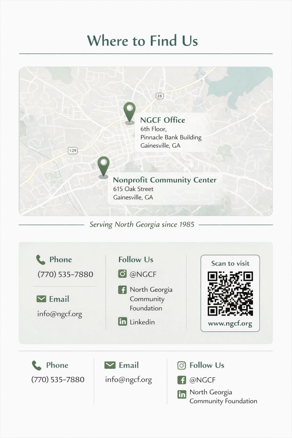 The North Georgia Community Foundation helps people and nonprofits invest generously in the lives of all those who call our community home. North Georgia: A caring community where giving is a way of life.