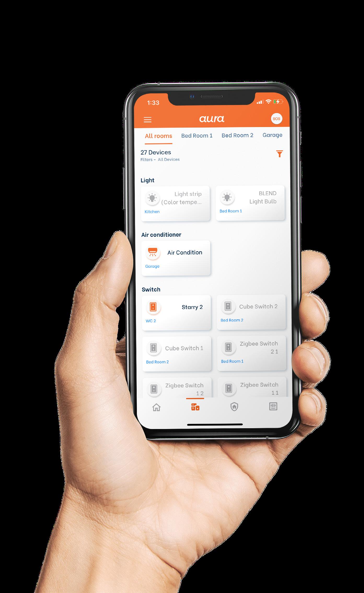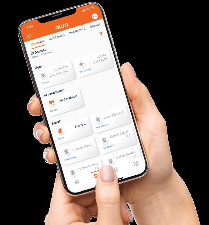 Điều khiển tất cả thông qua ứng dụng Aura Home.