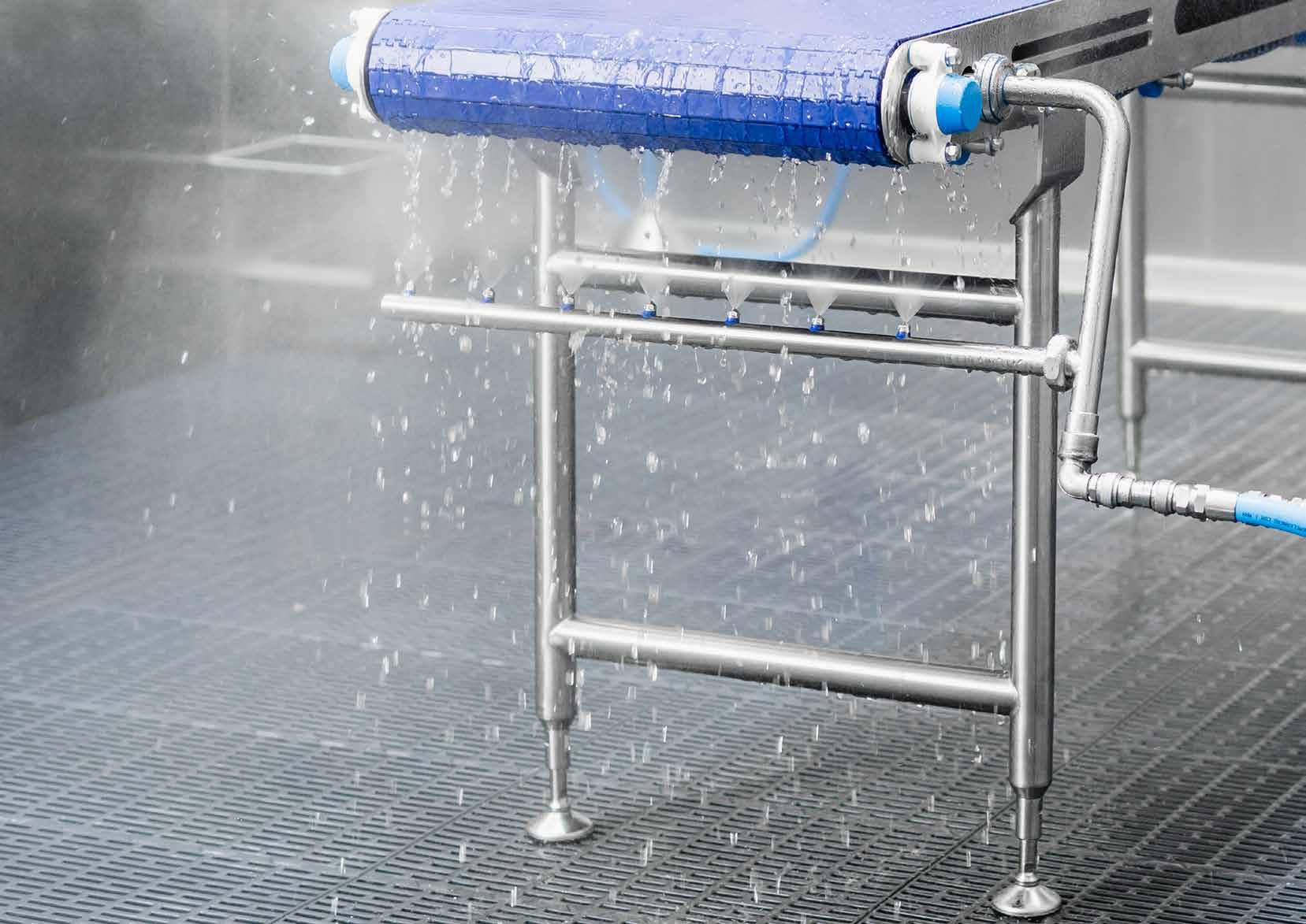 Provides cleaning coverage across the belt surface, ensuring food safety