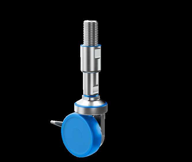 El freno está integrado en la carcasa de la horquilla, y el bloqueo de rotación y pivotación sucede en el interior de la rueda. Además, las ruedas están diseñadas para una instalación rápida y sencilla.
