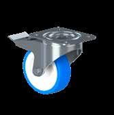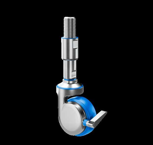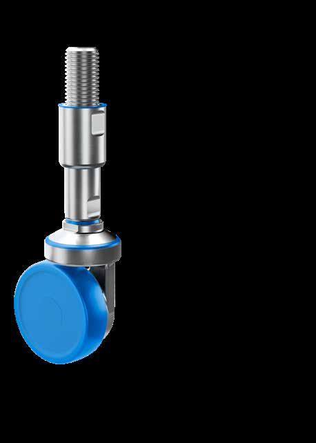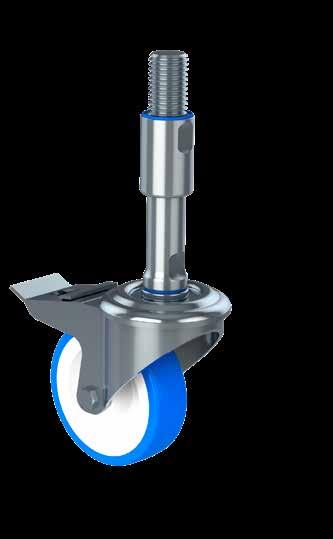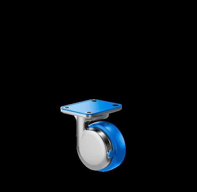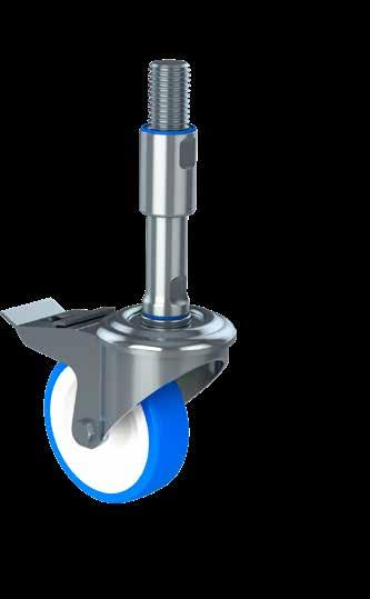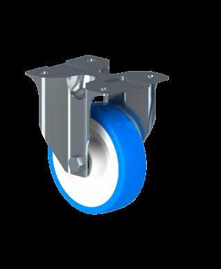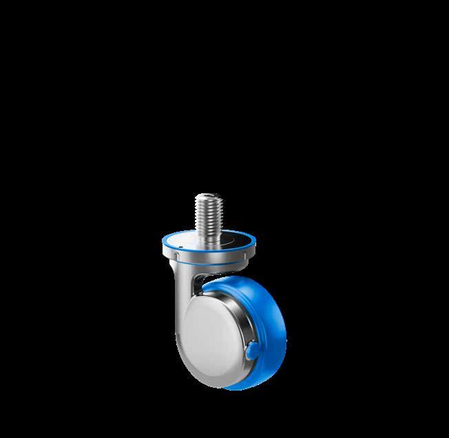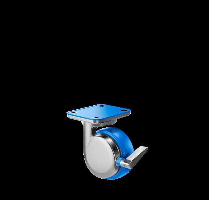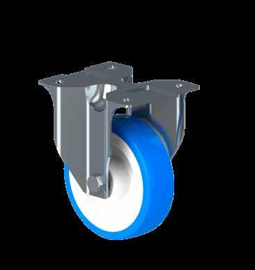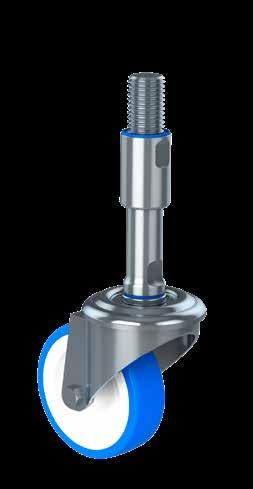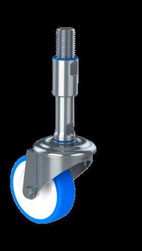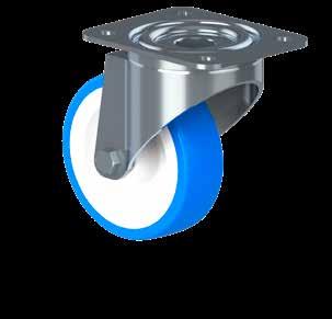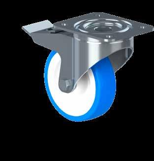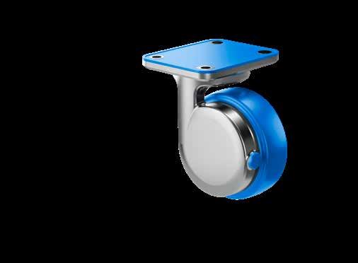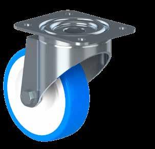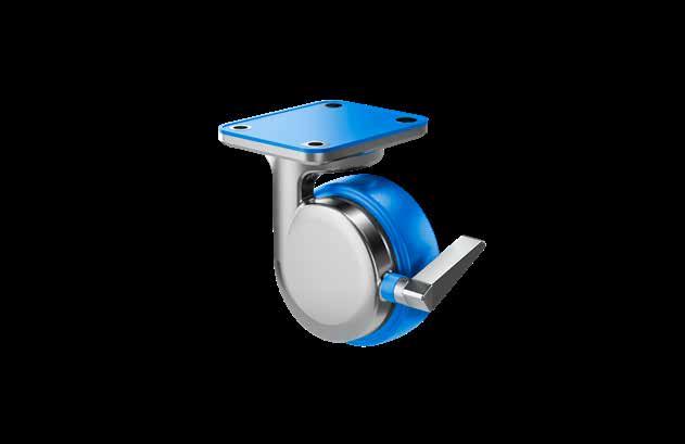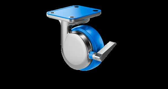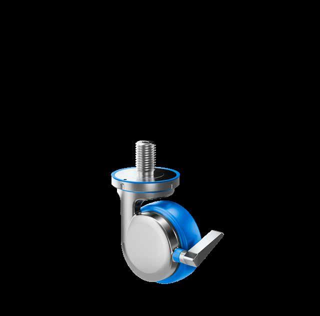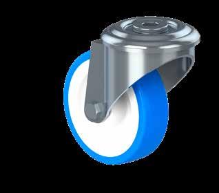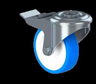 Le ruote igieniche NGI migliorano signifcativamente la sicurezza igienica, poiché sono progettate con un alloggiamento della forcella che permette un facile accesso per la pulizia. Tutte le superfci sono lisce e drenanti in quanto sono arrotondate o hanno un angolo di 3°, quindi lo sporco e i batteri non si accumulano.
