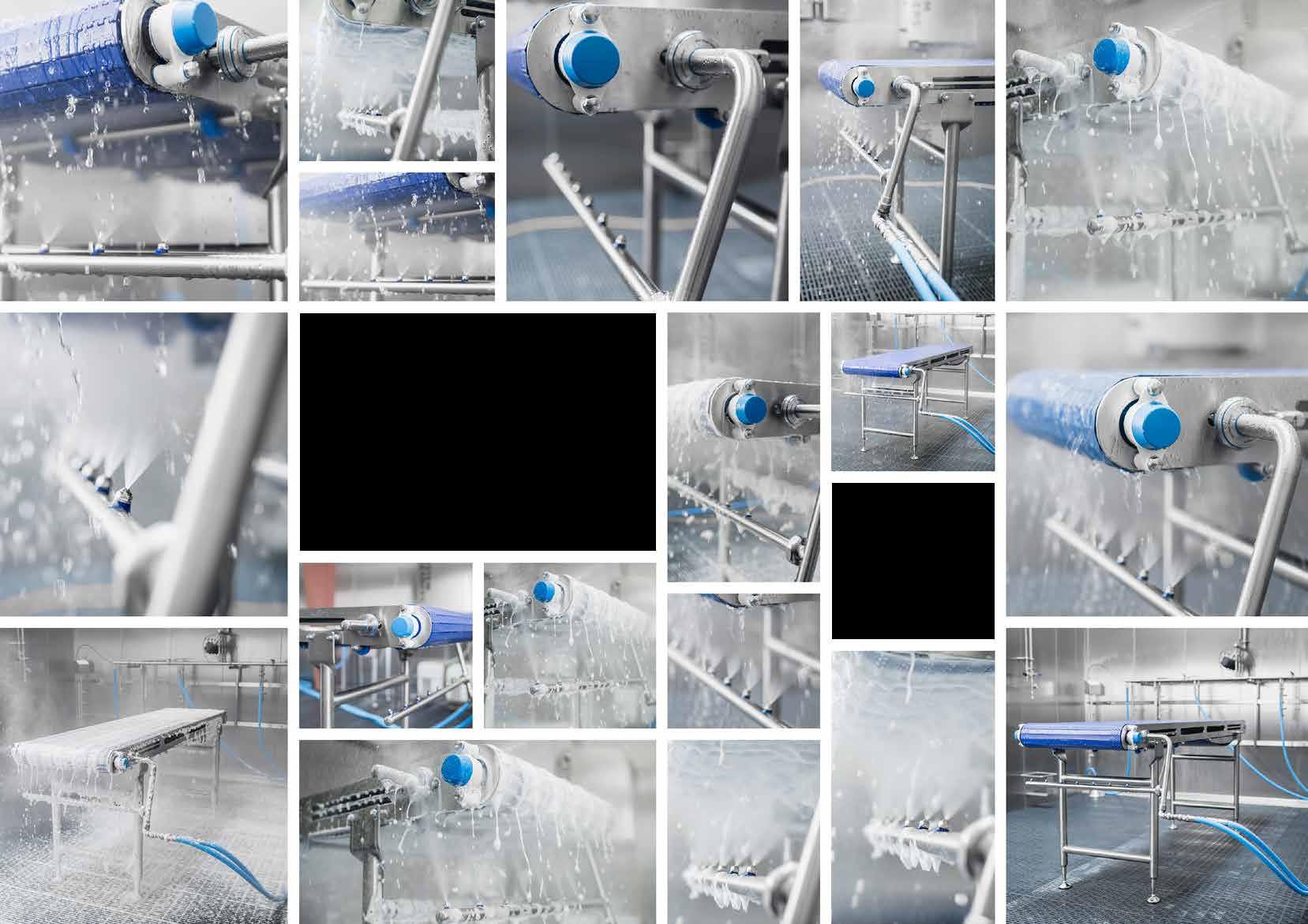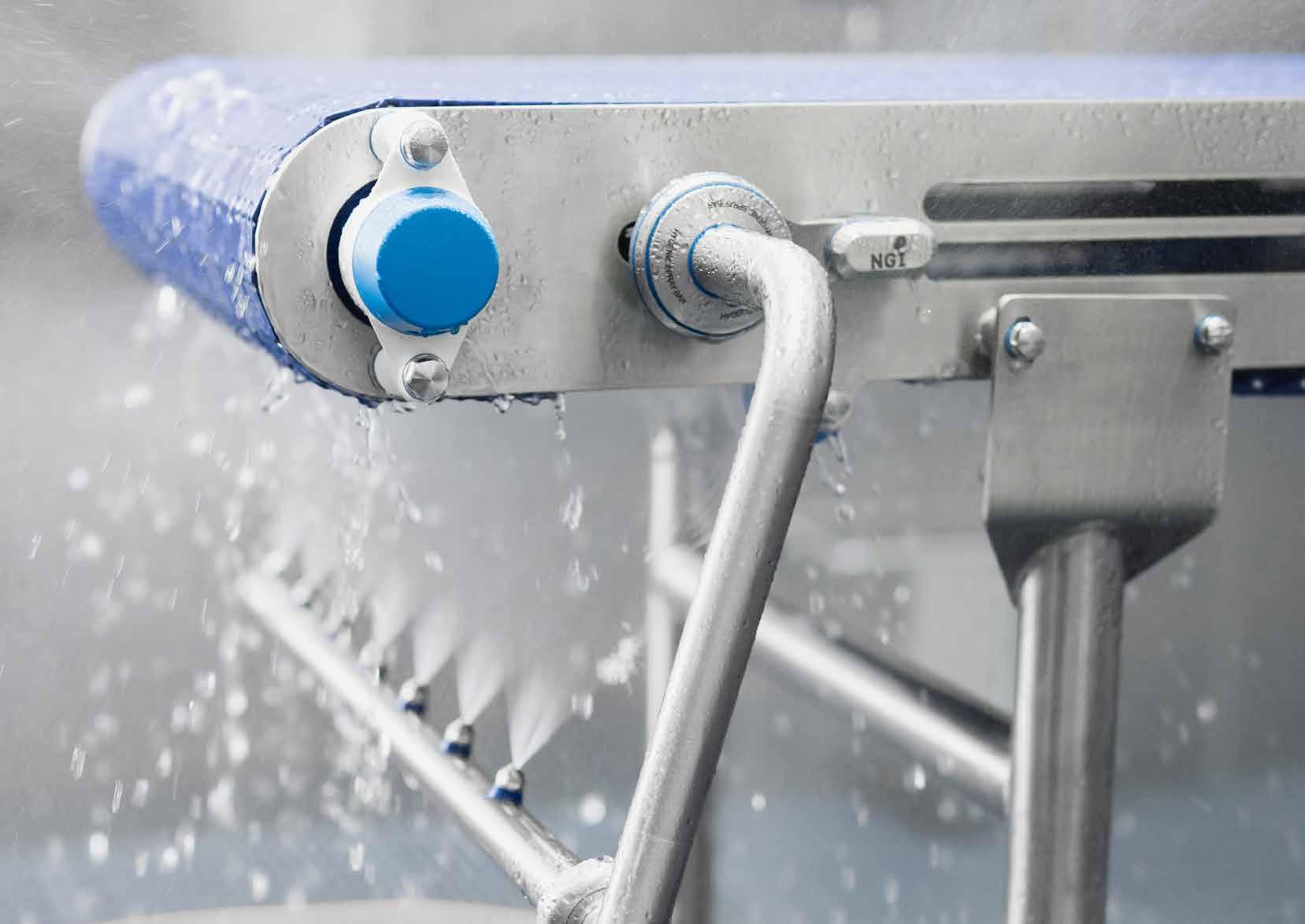 La nuova unità igienica CIP, facile da montare, è una soluzione semplice ed efficiente, in cui gli ugelli sono posizionati sulle due barre irroratrici. In questo modo si possono rimuovere efficacemente i residui organici accumulati da entrambi i lati di un trasportatore di processo e a nastro.