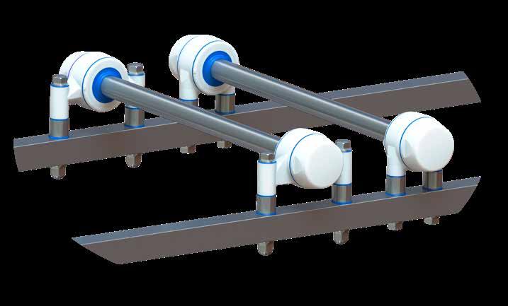 Il supporto per cuscinetto presenta una copertura impermeabile brevettata che sigilla il cuscinetto, impedendo la penetrazione di sporco e batteri e prolungando la durata del cuscinetto. cuscinetti sono stati lubrifcati in maniera permanente, eliminando il rischio di difusione del grasso contaminato durante la pulizia ad alta pressione.