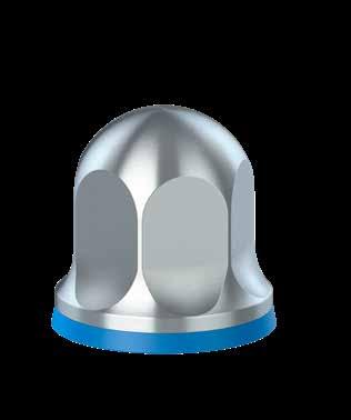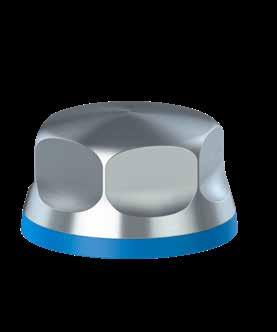 Certified hygienic NLXH nuts with blue sealing are the right choice of nuts to be used on all machinery in all certified hygienic wash-down environments. The sealing blocks out water and bacteria and prevents a non-hygienic metal-tometal assembly. Round-headed and self-draining surfaces with a maximal roughness of 0.8 µm Ra.