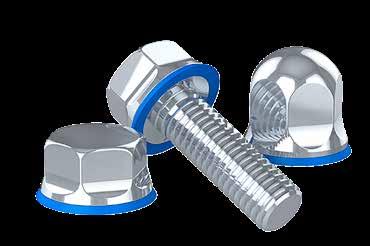 NGI tilbyder certificerede, hygiejniske bolte og møtrikker med blå NBR-gummipakninger. NBR-gummipakningen blokerer vand og bakterier og forhindrer en ikkehygiejnisk samling af metal-til-metal.