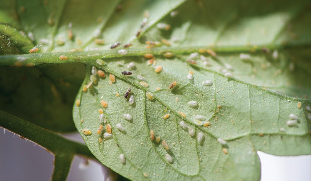 Tomato Potato Psyllid (Bactericera cockerelli) targets plants in the Solanaceae and Convolvulaceae families.