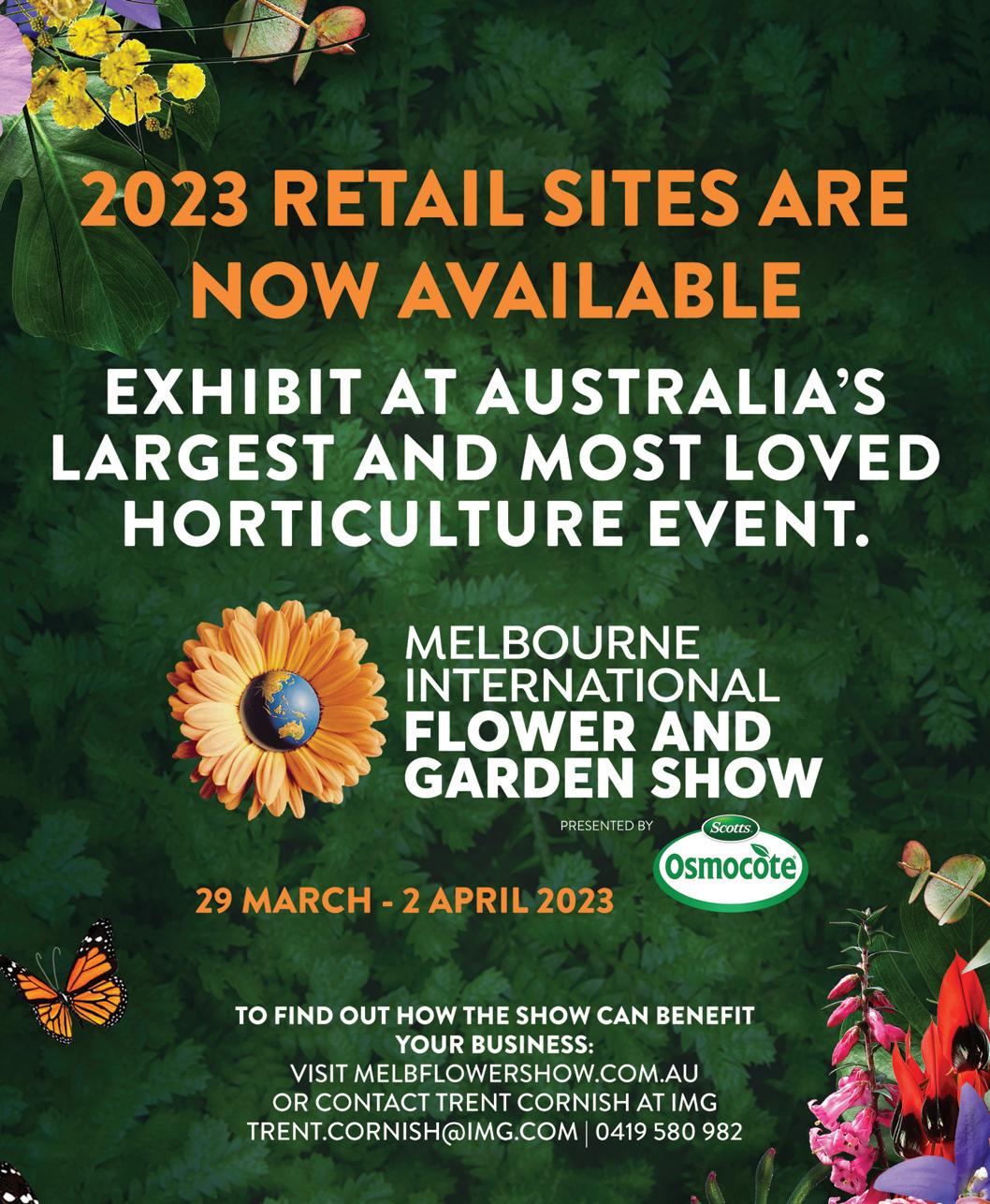 In December 2022, the industry came together from across the state, country and abroad to celebrate Australian Horticultural Trials Week. Trials Week is a true celebration of the innovation and ingenuity that permeates the horticultural industry in Victoria, and it was wonderful this year to have the Garden Gurus, as seen on Channel 9, as our presenting partner. Congratulations to all exhibitors who took part in this special week. Find out more about them and what was on show during Australian Horticultural Trials Week 2022 on page 9.