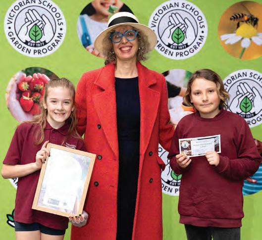 The top prize, the Kevin Heinze Perpetual Award went to Montmorency South Primary School, where all 615 students help create and care for gardens spanning a productive, orchard-and-chooks – kitchen garden, bush tucker, native and pollinator plantings, and a bush reserve restoring habitat for local sugar gliders. Students lead the full gardening cycle, with produce feeding into their kitchen garden program and learning from all gardens embedded across the curriculum.