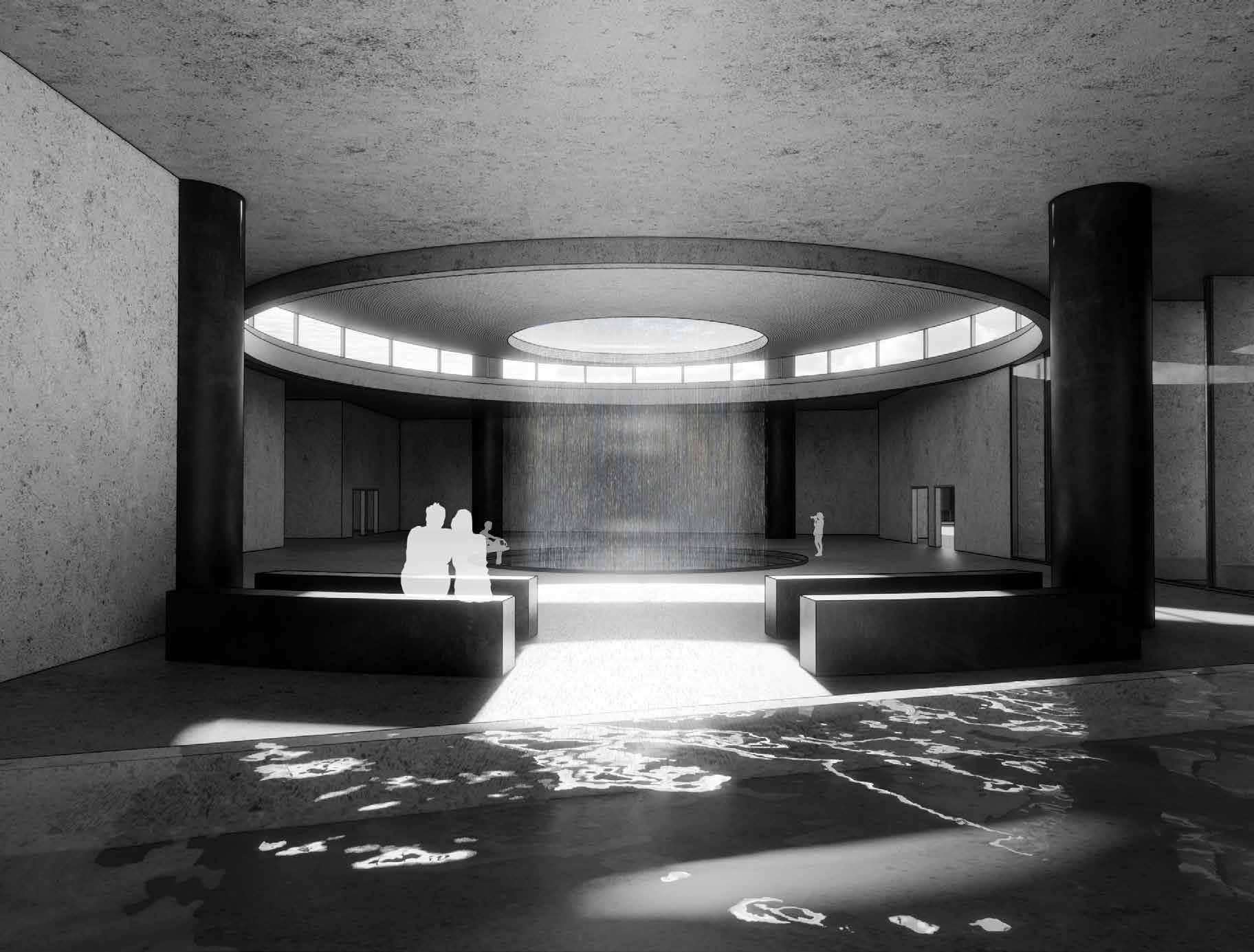 The proportions are calculated based on percentages relating to the ratio of columns to the roof, creating an architectural system that, while contemporary, still preserves the values and emotions of the past.