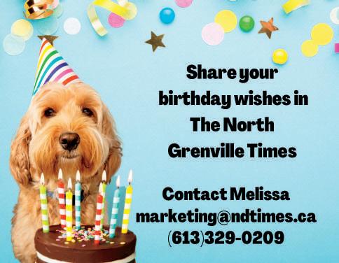 Vol. 11 No. 13 www.ngtimes.ca Reaching by direct mail 8,500 homes and businesses in North Grenville April 6, 2023 BLINDS SHUTTERS DRAPERY WALLPAPER & THE FULL LINE OF CANADIAN MADE CLOVERDALE PAINT STEVENS CREEK DECOR CENTRE 2678 COUNTY RD 43 KEMPTVILLE 613-706-1250 10510 Loughlin Ridge Rd, Mountain,Ontario www.bdlequipment.com 613. 209.3122 NOW IN STOCK Service available on all makes and models Compact Tractors and Cub Cadet Mowers Specializing in financial planning & investments samantha.rivet-stevenson @rbc.com 613-816-9697 cont'd on page 2 www.laurieropticalkemptville.com 613.258.2700 Kemptville Eye Exam Clinic Kemptville Mall info@laurieropticalkemptville.com FRAMES From $59 see store for details OPEN 7 DAYS A WEEK Sunday to Thursday 7:30am-8:00pm Friday and Saturday 7:30am-9:00pm 2794 County Rd 43, Kemptville www.kemptvillefamilyrestaurant.com 613-258-6821