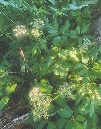 is a variegated type with bluegreen leaves that have creamy white margins, but these tend to revert to the faster-growing fully green coloration in invasive populations. It is also known by a variety of other English names including Bishops-weed, Ground Elder Goutwort, Herb-Gerard, English Masterwort, Aise-weed, Dwarf weed, White-ash-herb, Dog Elder, and Snow-on-themountain. Before we knew its identity, we called it Weirsbane, since it grew around the house we bought from George & Esther Weir, and promptly began to romp across lawns, garden beds, ash heaps, old barn foundations, and wooded groves. Historically, it was considered a treatment for gout, and once you get used to the sharp flavour, it makes a nice potherb in the spring.