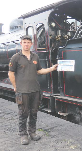 6. The North Grenville Times in the hand of the Engine driver/ fireman on Bolton Abbey Steam Railway Yorkshire UK, delivered by Baldwin's Birds.