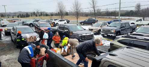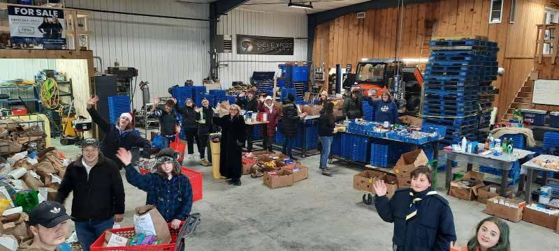 throughout the day, assisting parents and adult leaders in receiving and moving donations. Senior Scouts and Venturers, under the direction of Scouter Dan Gilpin, managed safety in the parking lot and worked alongside teams to unload vehicles and bring groceries into the facility. They were joined by additional young volunteers who dropped in during peak hours to lend a hand. Cubs and Scouts participated in the doorto-door portion of the campaign, and Kemptville’s own RSCC Defiant Sea Cadets canvassed another section of the community. The Sea Cadets will return in the coming days to help sort the collected food. Families also play a
