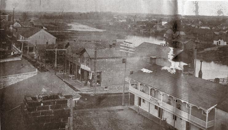 In 1834, where Rotary Park is today, William Bradbury opened a small store on the corner of Clothier and Prescott, and it was taken over in the 1850's by Thomas Maley. Maley was a successful financier and entrepreneur, and over the years added to the Maley Block until it was a threestory edifice covering the entire block from the bridge to Clothier Street, with offices and stores facing on to both streets. Maley’s grandson, William Fraser, took over the business in 1907. The Block contained many enterprises over its history, including a job printing office between 1870 and 1880, tailors, lodge rooms for the Orange Order, watch makers and jewelers, and the first Public Library in Kemptville. In Kemptville Past and Present, this library is described as follows: