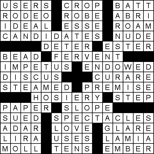 64. Accomplishments DOWN 1. Leveling wedge 2. Dry riverbed 3. Angers 4. Juicy fruit 5. S S S 6. Confections