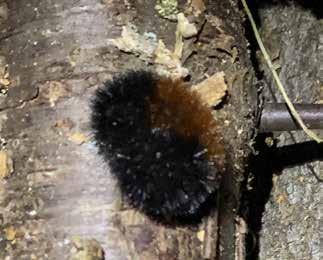 It's hard to say how incidental sightings correspond to real numbers, but it seems that naturalists were certainly seeing Isabella Woolly Bears, but not generally in exceptional numbers. These caterpillars are freeze tolerant, and the photograph is of one in a woodpile in a shed, about 40 cm above the ground, looking quite ready for the -18°C that followed in a couple of days.