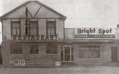 Ridge in 1917. Creswell Johnson bought the building in 1920 and carried on Hutchins’ business, operating a taxi, or shuttle bus service around town and between the train stations. This business carried on for twenty-five years until Johnson’s death, when the building was bought by Garnet Van Allen in 1946. Times change and people had their own cars to get about in, so the new business on the site was a garage and car dealership. It carried on under various owners, Del Seymour, Bill Todd, Kemptville Motor Sales, before completely altering its identity by becoming a restaurant in more recent times. Even then, it continued to be a witness to historic events, such as the large protest outside its doors when the South African Ambassador was invited to address the Rotary Club at the Bright Spot in the dark days of Apartheid.