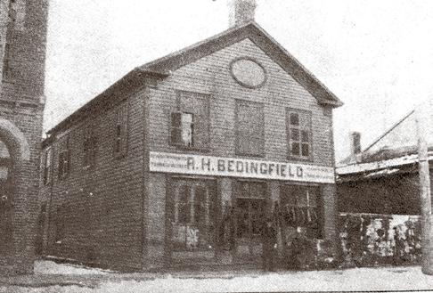 Not many people will recognise that name. They know the place as the Bright Spot Restaurant, or maybe the Moonlight, its most recent incarnation. But, as the picture on this page shows, it was once the store of Robert H. Bedingfield, described in 1903 as “a first-class harness salesroom with the workshop in the rear. Here he carries on every thing known to the trade in the line of harness, saddlery, trunks, valises, etc.”