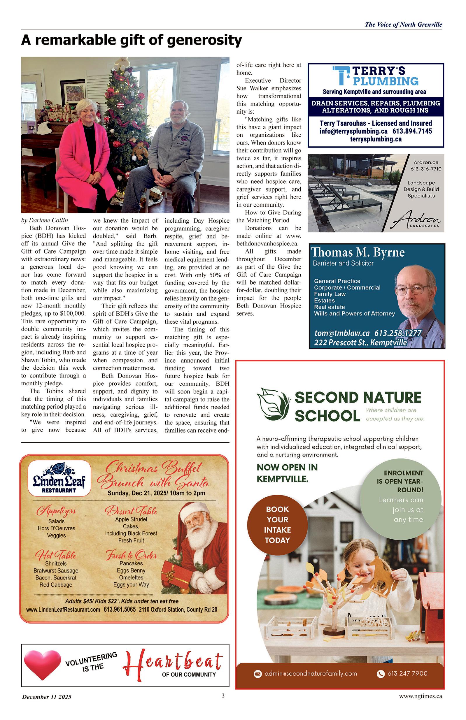 has raised more than $300,000 for local charities and community organizations. Funds raised through the event have supported causes such as the KDH Foundation, Beth Donovan Hospice, Leeds & Grenville Interval House, Kemptville Seniors’ Community Services, Community Living North Grenville, and the Ryan’s Well Foundation, among others. Now in its 26th year, the Sweetheart Brunch continues to reflect the generosity and compassion of the community it serves.