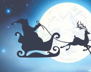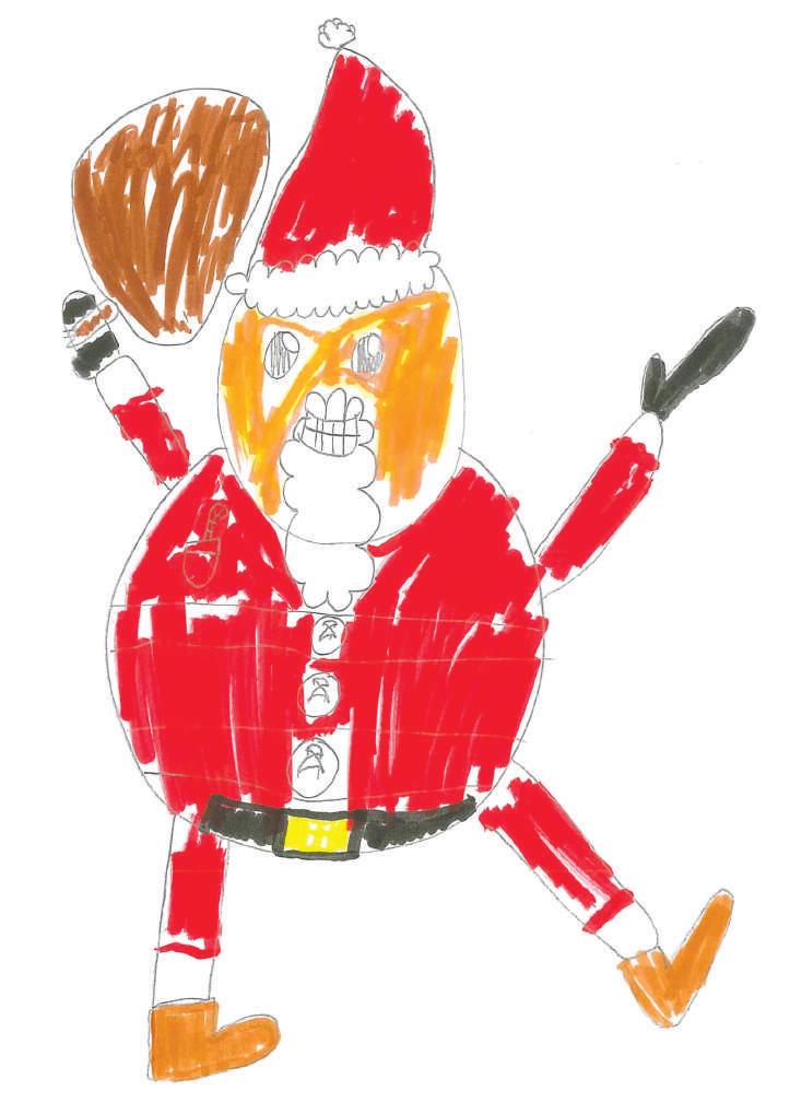 Yet jingle bells, a sound quite swell, ring above your roof, A slick, quick sleigh, and goats with no bray, shoots through the air, St. Nicholas, on the eve of Christmas, working hand and hoof, Toys and treats, and sweet, tasty eats, are dropped from everywhere, Strait to your tree.
