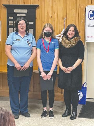 The Oxford Mills Sisterhood of Guiding held an enrolment and awards ceremony at their Clubhouse on December 13 to recognize years of service for Guiding members and volunteer Guiders. A ceremonial entrance, followed by O’Canada and the Guiding Promise, brought back many memories for Guiding Alumni as they watched these young Guiding members pledge their promise: To do their best, To be true to themselves, their beliefs, and to Canada, to promise to take action for a better world and respect the Guiding Law.