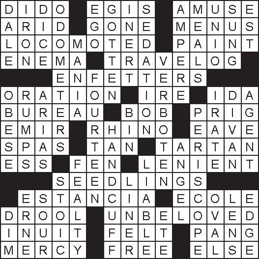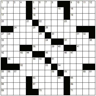 44. Exchange 46. Snip 47. Incriminate 49. Excrete 50. Wreck 53. Triangular formation 55. Envelop 56. Fit 57. Moving within 58. Airhead 60. Russian emperor 61. Fizzy drink 64. Born as