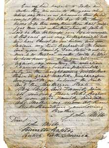 “June 17, 1861. “I was sory for the berevement you had in your Family of the Death of 3 of your Children it was a heavey triel on you I am shure in shuch a short speace of time I simpethise with you and your truble I was sory to hear that your Houseband had be been aflicted with his leg but I hop that it is Better by this time....I will be glad to hear from you when you write me again say something about the conections. I have nothing more particular only in the neighbouring United States there is great warlike preparations amongst them betwixt the North and the Southern States. My wife and Family join in sending their kind Respects to you and Family and Father and Mother. No more at present. But remaining your Loving Brother