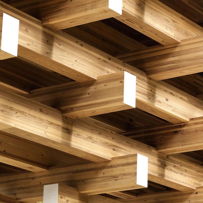Nhật, nhà trưng bày - tổ chức sự kiện và gian triển lãm khá ấn tượng của trên 5 sự kiện quan trọng. Ngoài ra, hệ dầm lá mảnh này là toàn bộ gỗ dầm được tận dụng, phân loại từ các dự án khác, cho nên phần chi phí phải bỏ ra rất ít.